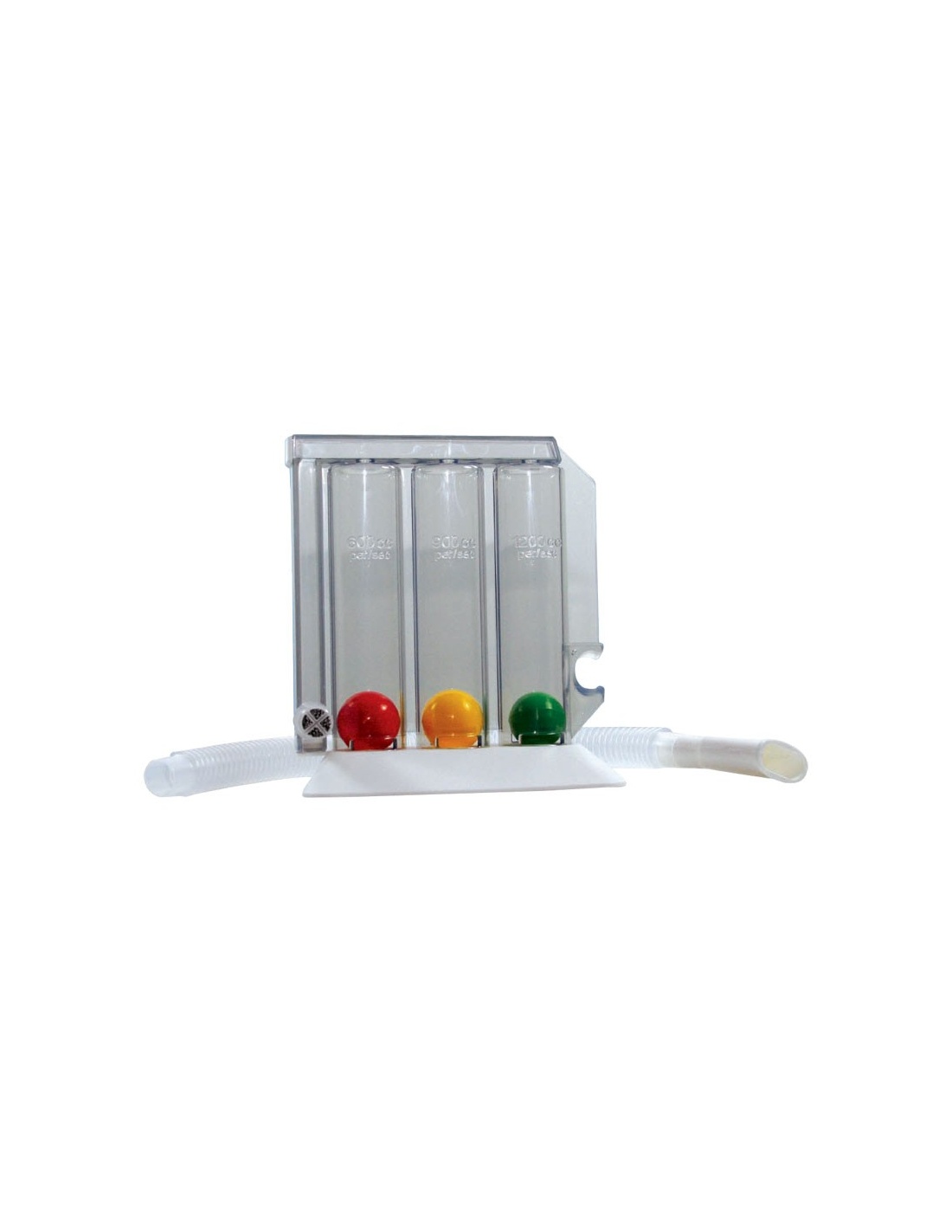 - Un corp central transparent, impartit in trei camere, realizat din copolimer si polistiren netoxic, care realizeaza 600, 900, respectiv 1200 cmc-secunda.