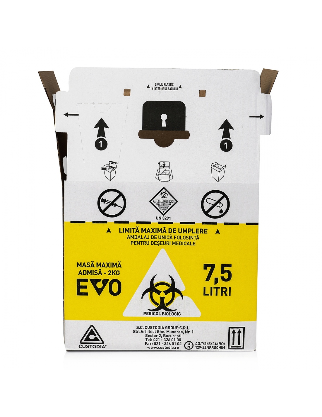 Cutii carton deseuri infectioase, incinerare 7.5 litri, cu sac galben