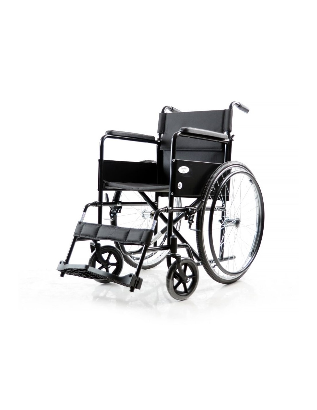 - Un numar scris pe autocolantul rotund de pe cotiera (ex. 46) indica faptul ca latimea scaunului scaunului rulant este de 46 cm