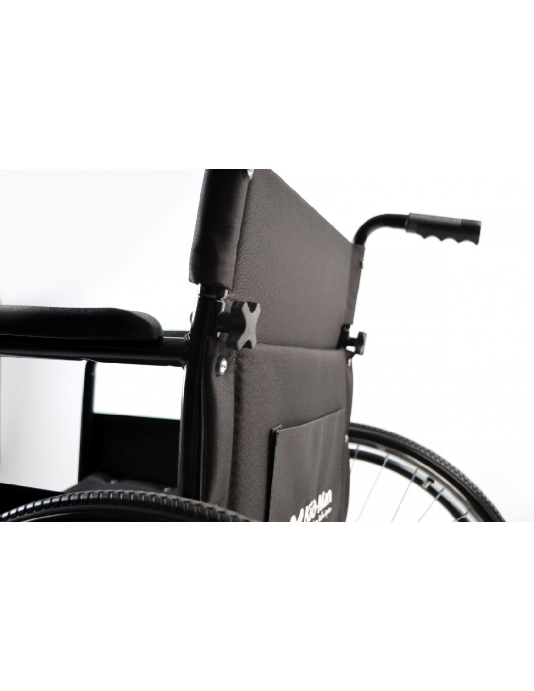 - Daca este necesar, scaunul cu rotile poate fi condus de catre escorta folosind manere de impingere montate deasupra spatarului