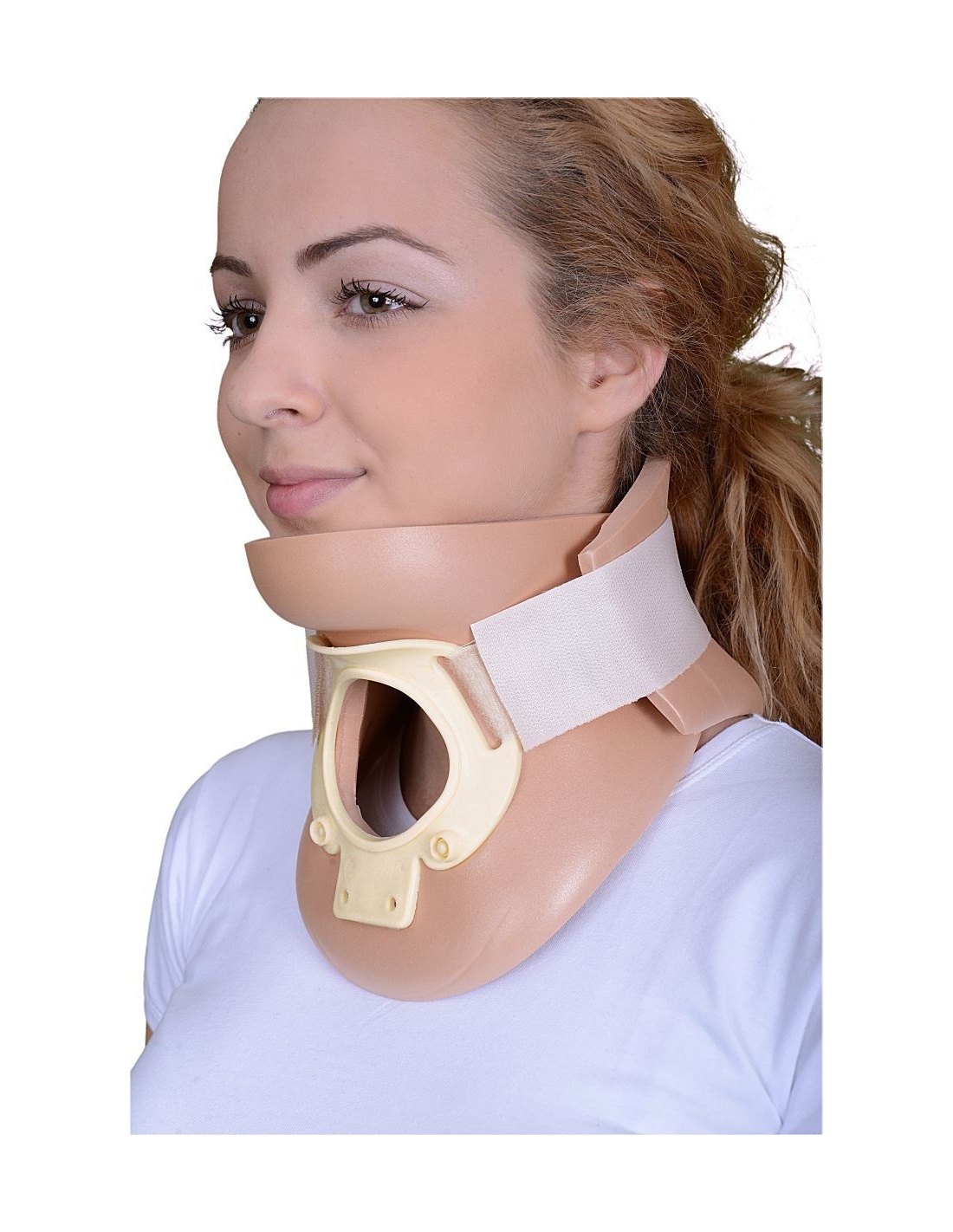 - Acest produs este utilizat in mod eficient dupa traumatisme ale gatului sau hernie de disc cervical, atunci cand este necesar un nivel mai mare de stabilizare decat poate fi asigurat de un burete sau guler Nelson. Este fabricat din plastizot si este potrivit pentru RMN deoarece nu contine piese metalice.