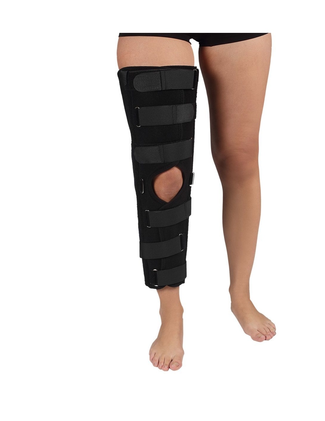 - Ofera suport postoperator dupa operatiile rotuliene, artrale si ale ligamentelor colaterale. Produsul este realizat dintr-un burete de 6 mm grosime acoperit cu o tesatura speciala de prindere cu velcro in interior si exterior din panza. Datorita a trei tije metalice, una pe axa posterioara a genunchiului si una pe laterale, genunchiul asigura 0 extensie. Este produs la 75 cm lungime.