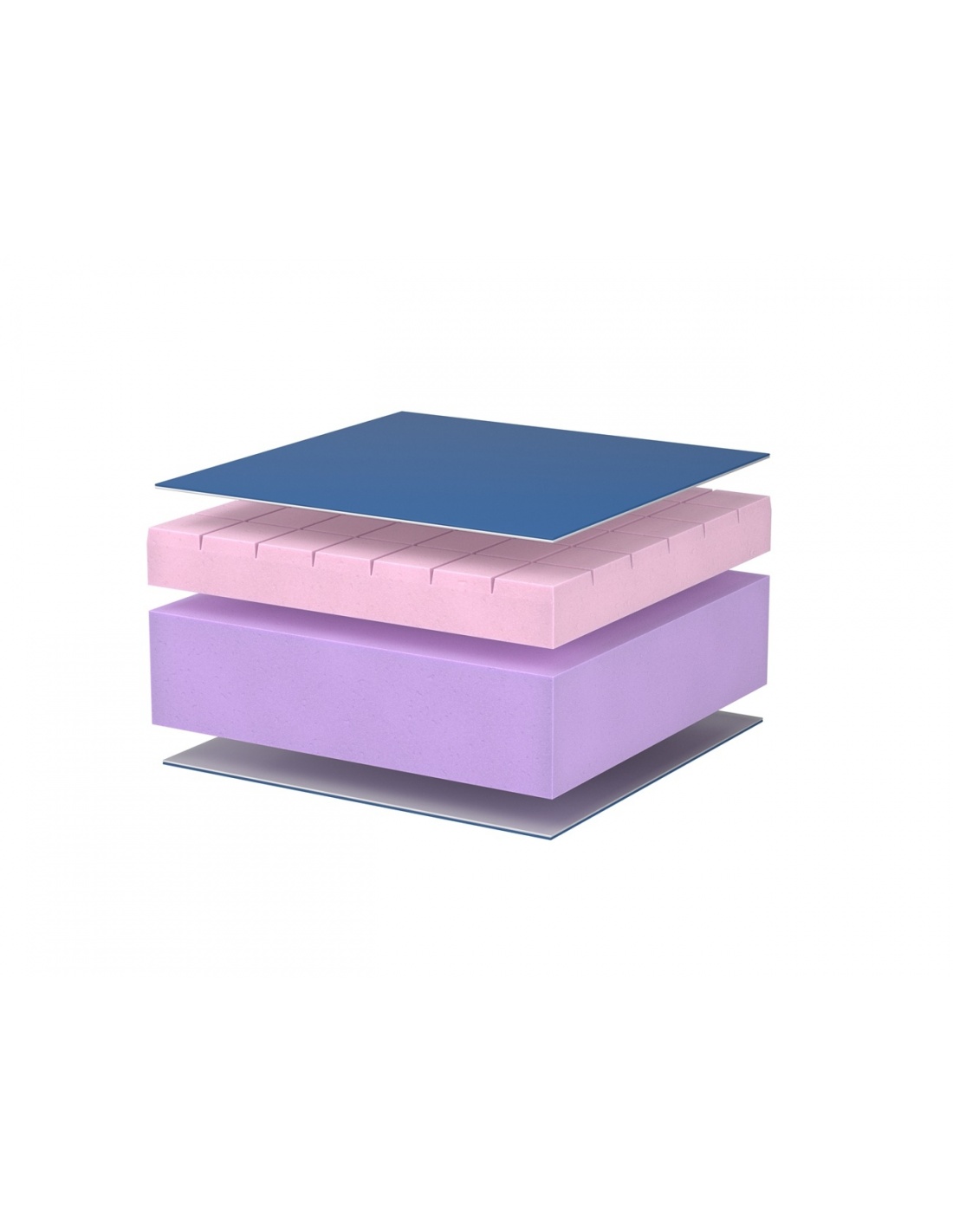- Strat superior din spuma vascoelastica, profilata in cuburi de 6x6 cm, care se muleaza perfect pe forma corpului, reducand presiunea asupra tesuturilor moi si permitand circulatia aerului.
