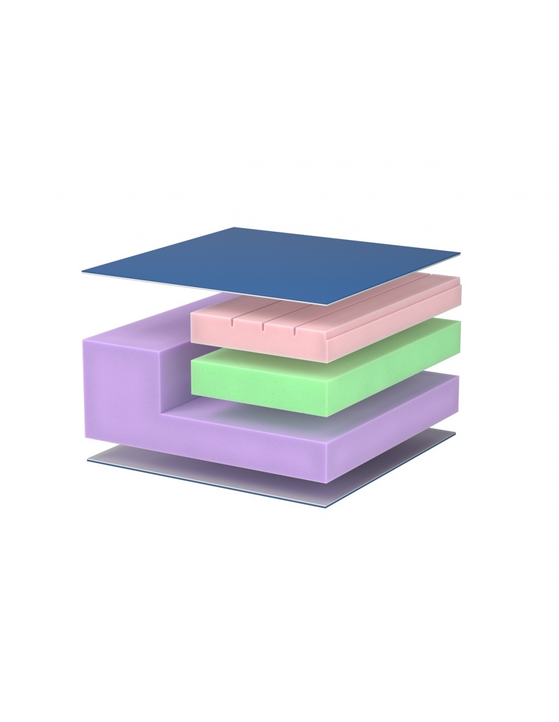 - Strat superior – spuma vascoelastica 60 kg/m³, care se muleaza perfect pe forma corpului si reduce presiunea in zonele sensibile. Acest strat are caneluri longitudinale de 5 cm latime, ce favorizeaza circulatia aerului si reduc acumularea de umezeala.